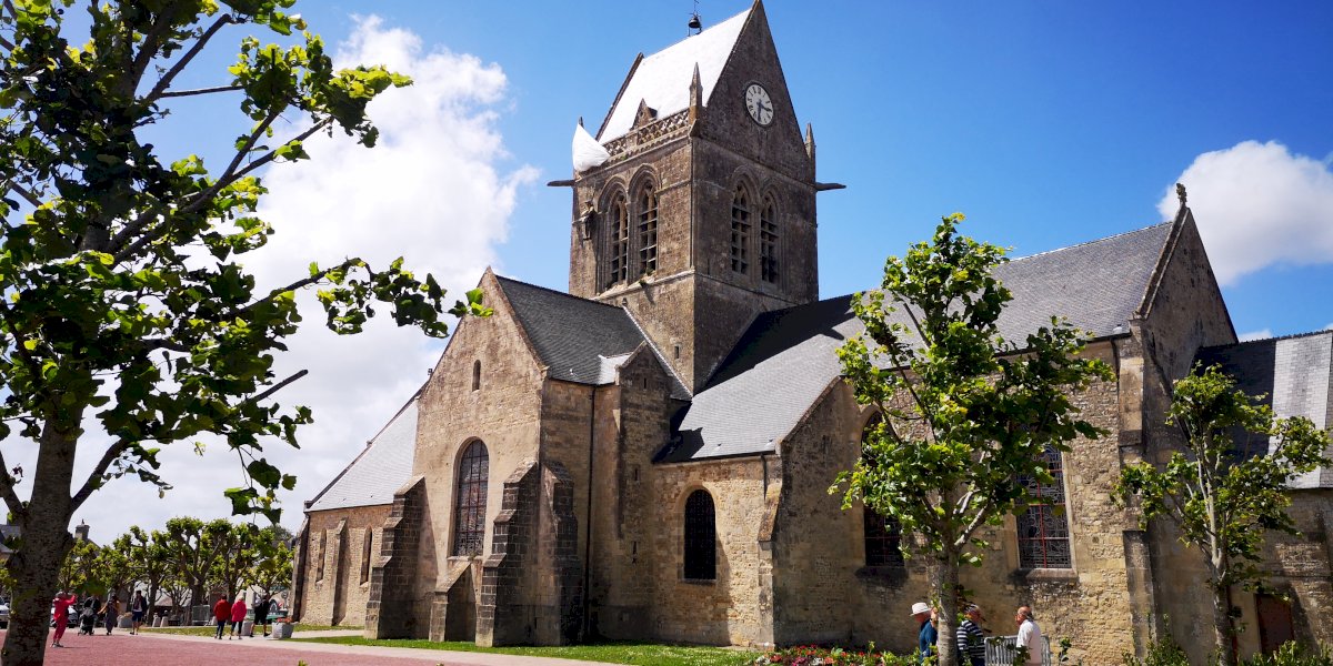 Start your day in Sainte-Mère-Église, one of the most symbolic towns of the Normandy landings. This village became a strategic point when American paratroopers of the 82nd Airborne Division descended here just before dawn on June 6, 1944. Visit the historic church—famous for the paratrooper figure suspended from its steeple—and learn about the dramatic airborne operations that changed the course of the invasion.
